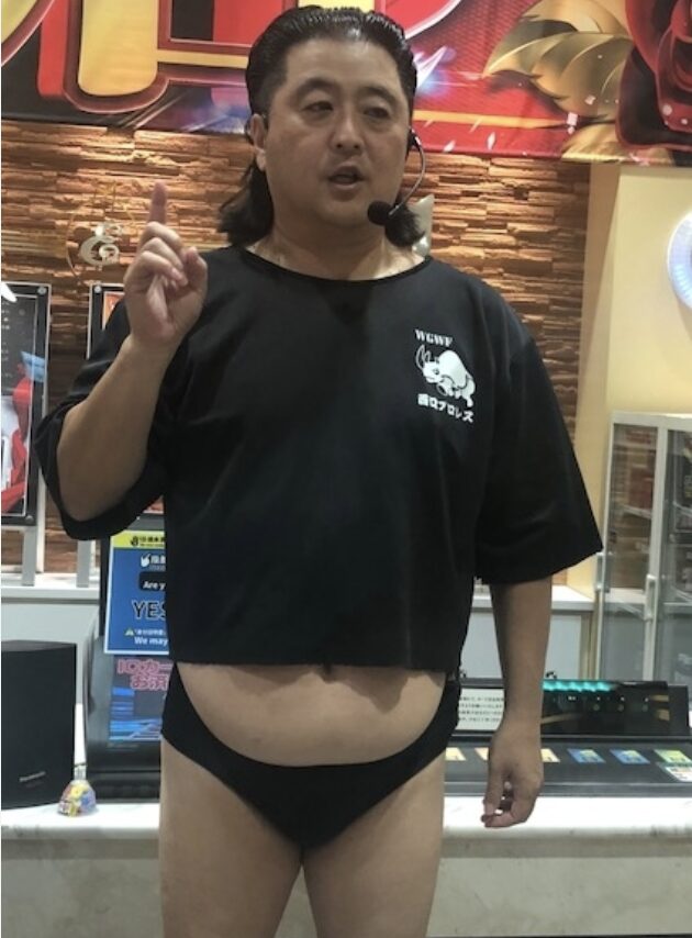 レスラーパンツにぽよっとしたお腹がかわいい、面白いですよね笑